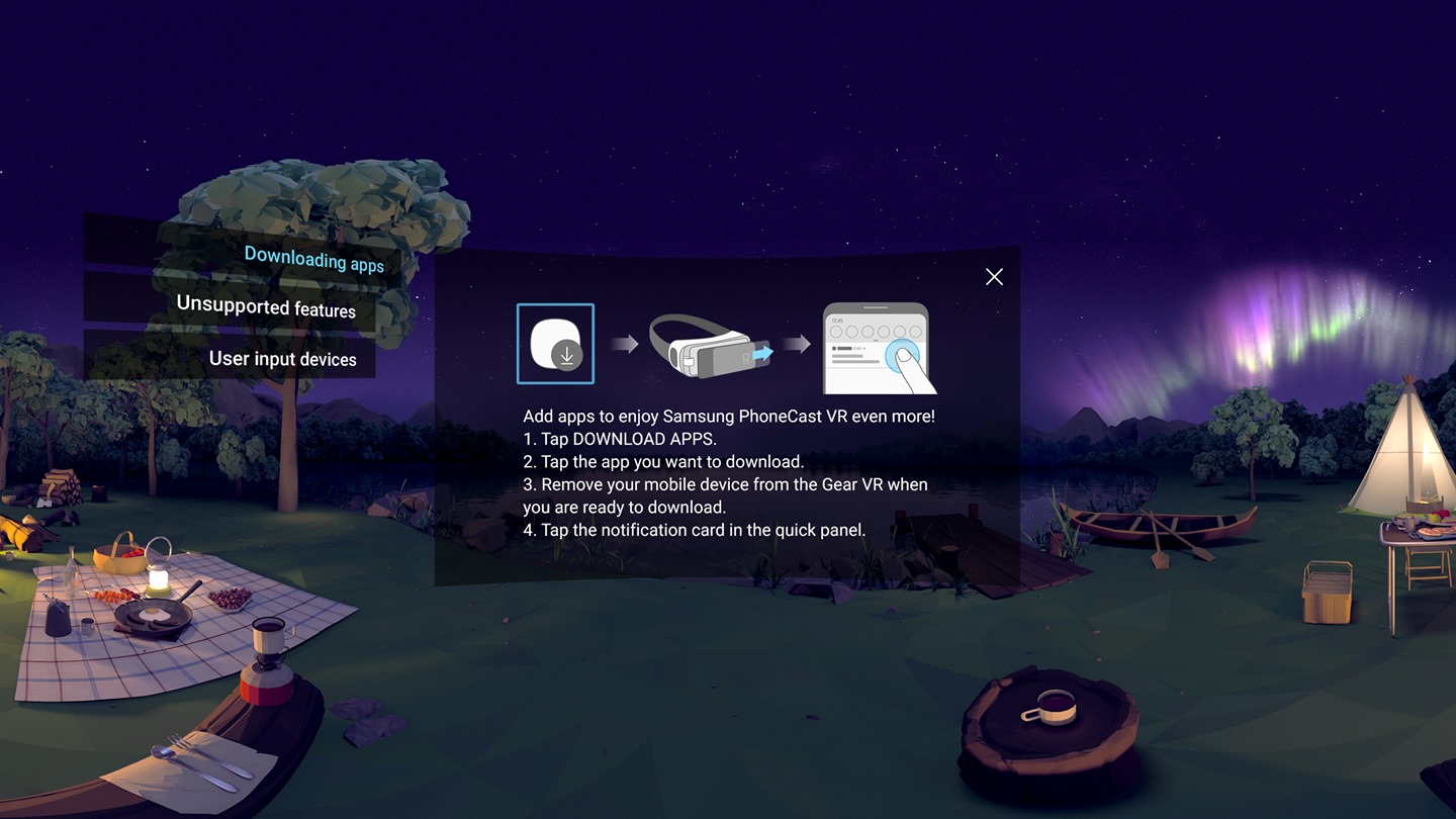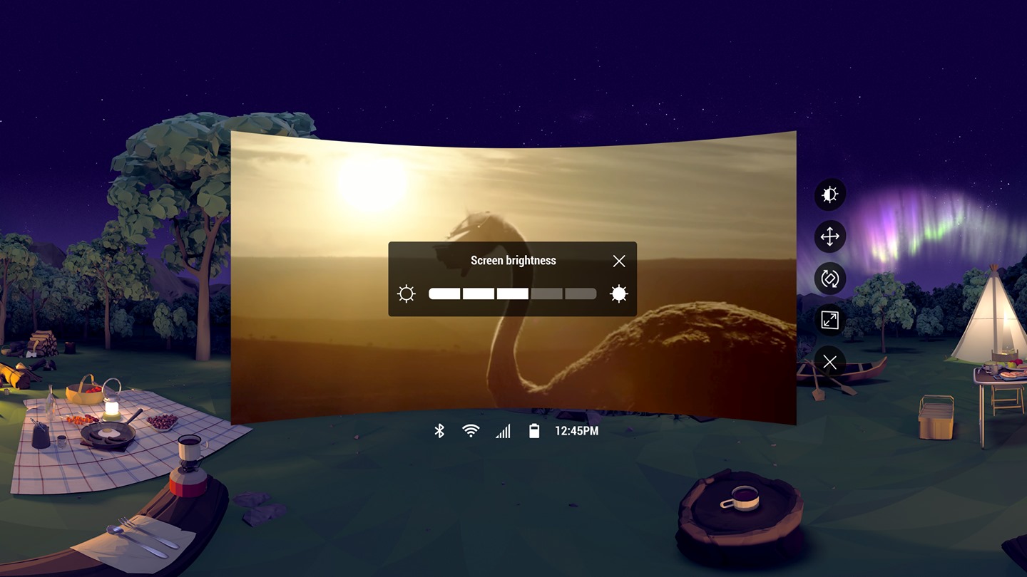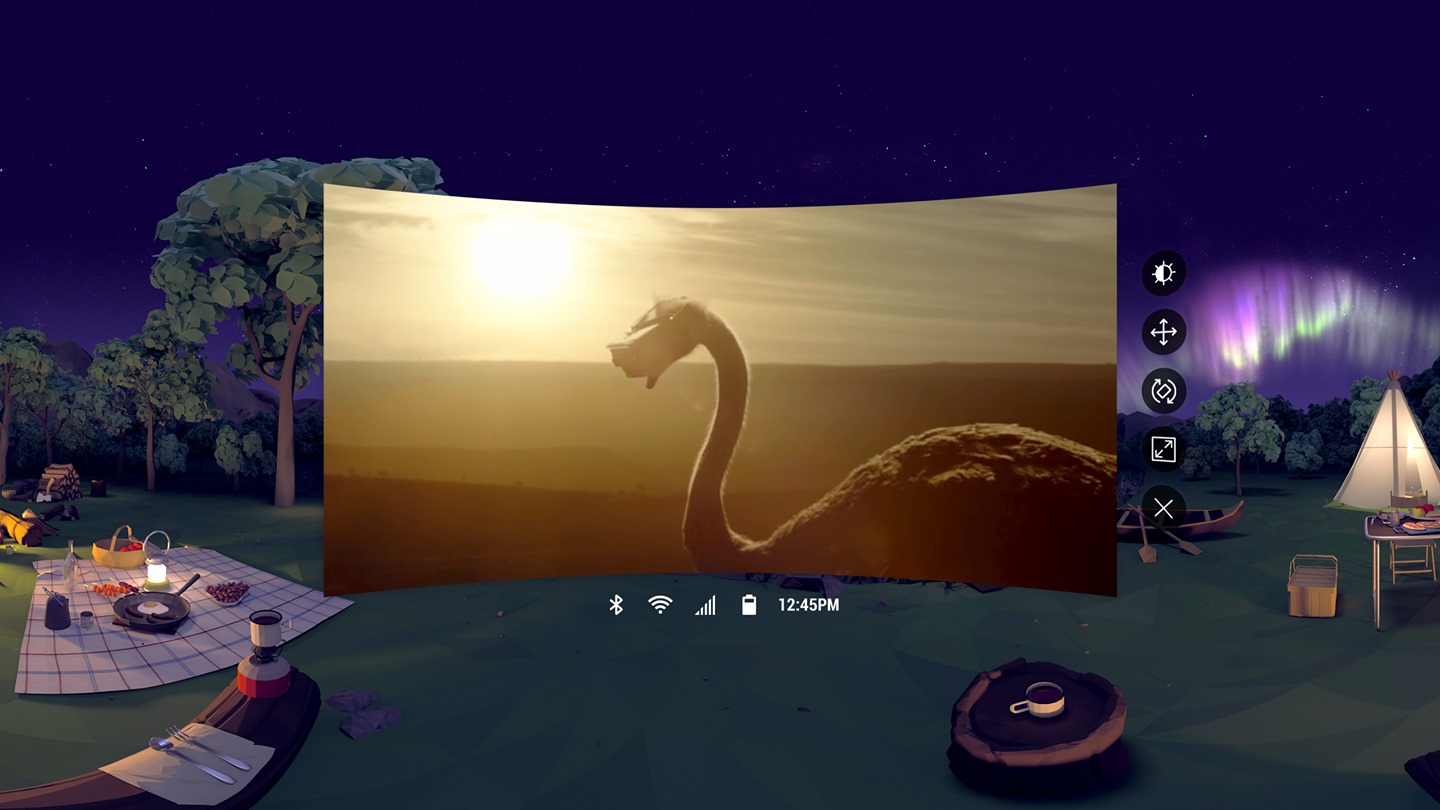 When the PhoneCast app is launched, users are presented with a scenic background with lakeside campfire, and any compatible video streaming app can be launched. Users can not only change the brightness of the video, but also the size and position of the virtual screen. The app is still in beta, but you can download and install its latest version from our APK section.