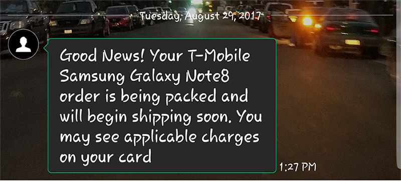 Some customers who pre-ordered a Galaxy Note 8 from T-Mobile have now started receiving text messages from the carrier. The messages confirm that their Galaxy Note 8 order is being packed and that it will ship soon.
