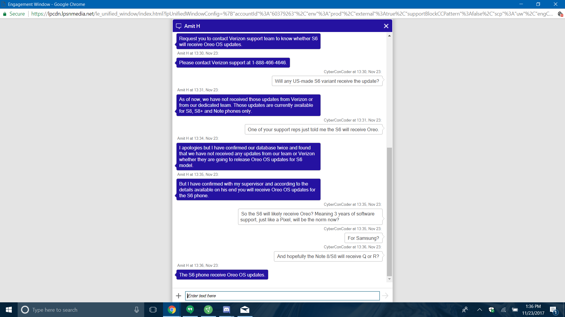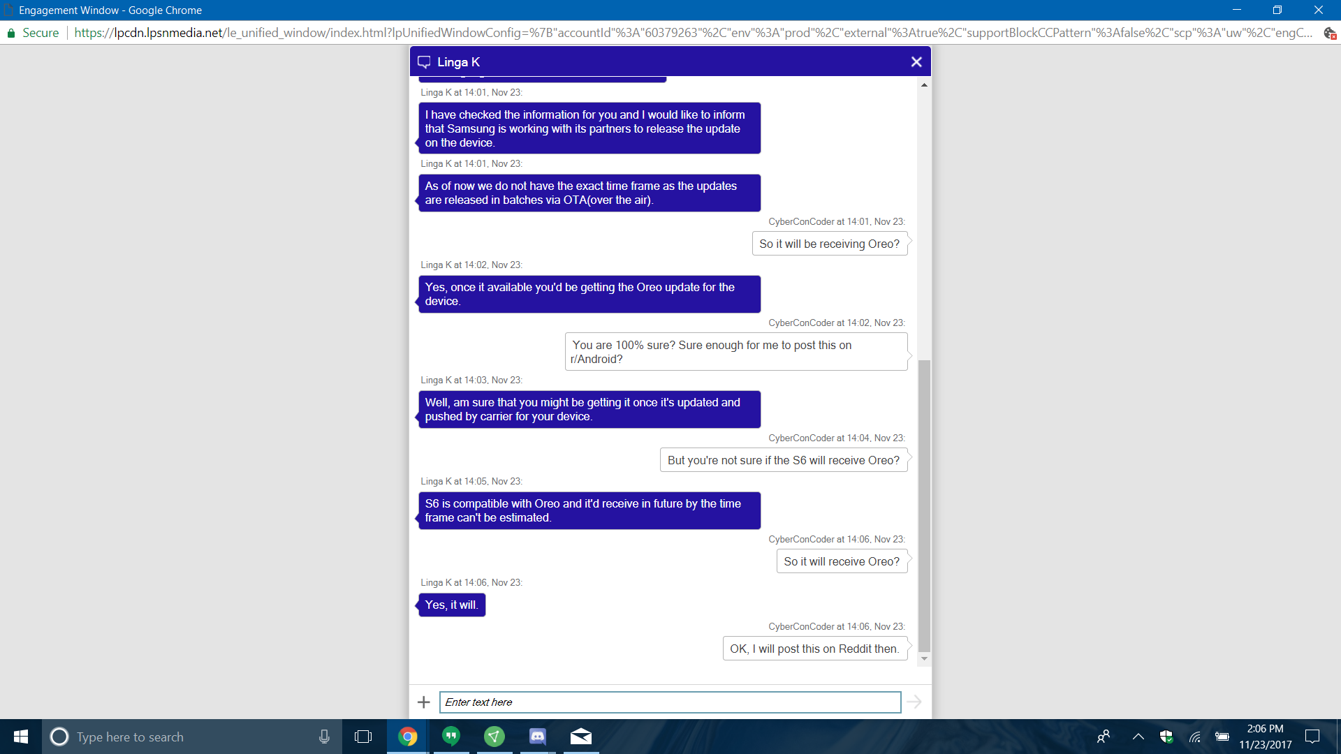 Samsung reps say the Galaxy S6 will be updated to Android 8.0 Oreo