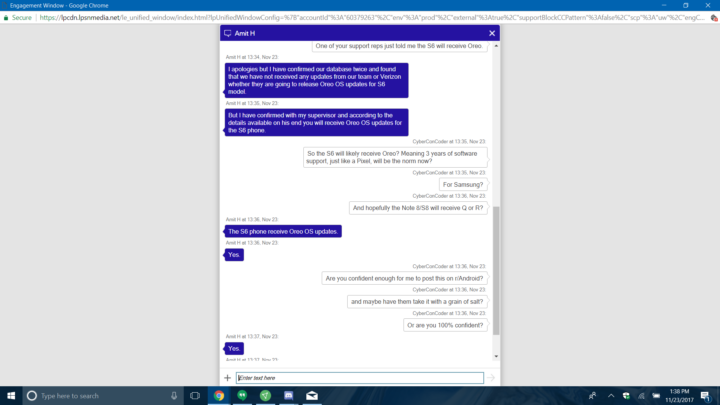 Will the Galaxy S6 and Galaxy S6 edge get the Android 8.0 Oreo update? Going by Samsung’s tradition of only releasing two major Android updates for every flagship, that would seem unlikely. But according to a couple of Samsung customer care representatives (from India, if we look at their names) who were asked the question by Reddit user CyberConCoder, Samsung is working on bringing Oreo to its first glass and metal flagship. Now, Samsung customer care executives are probably the least accurate source for such information, but at least one of the contacted reps seems very confident.